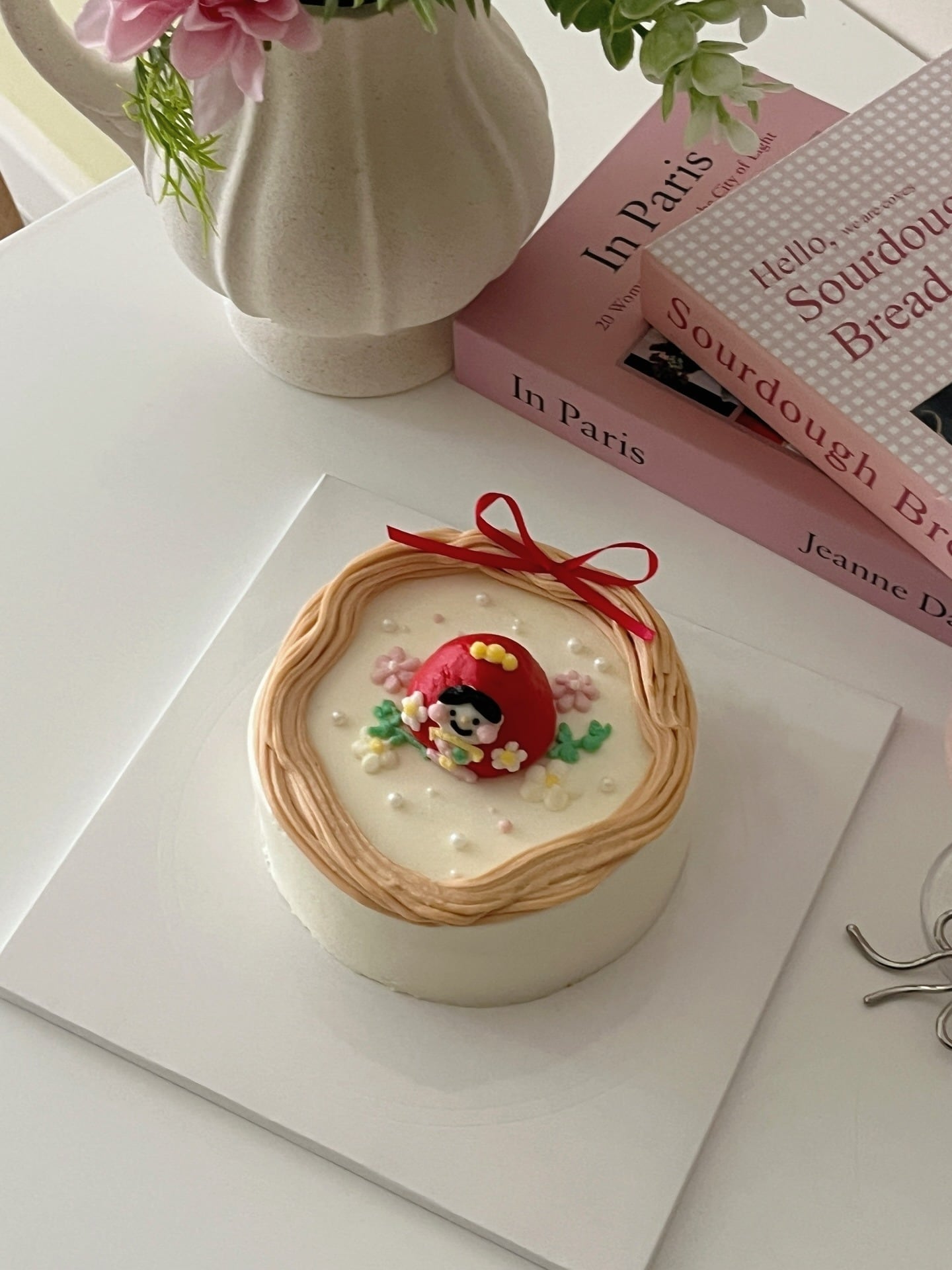 ちょこんとのったお雛様が愛らしい、春を感じるデザインケーキ♡